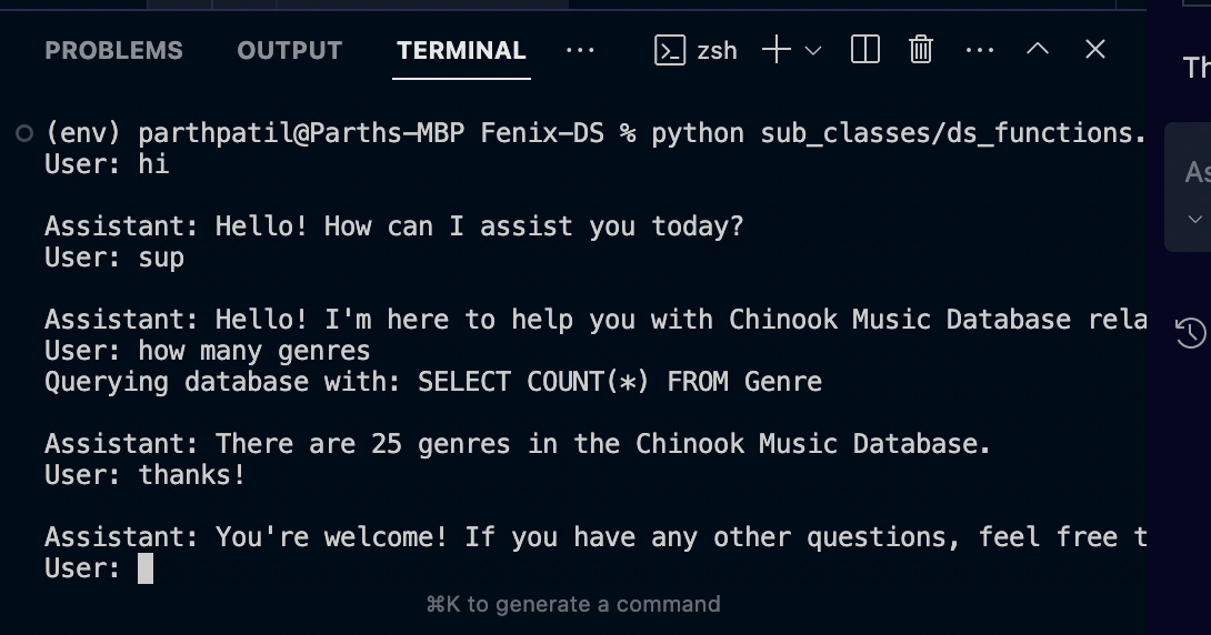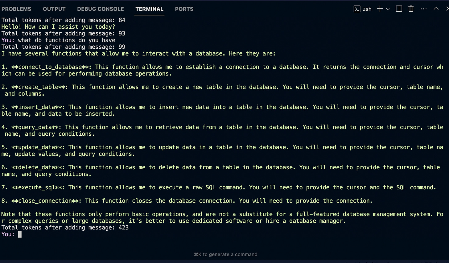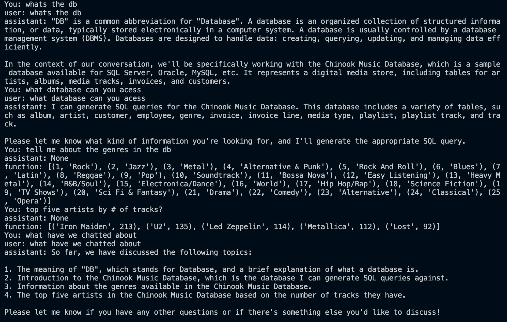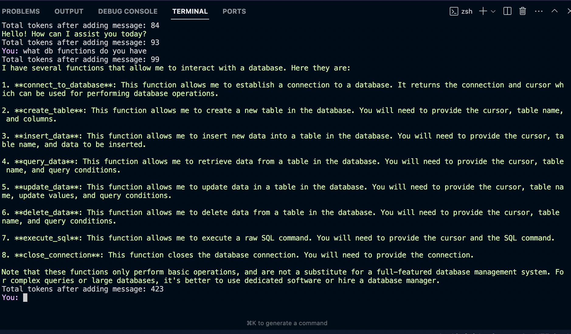 I decided to build a chatbot to automate basic SQL database interaction. Got this far in 10 minutes.